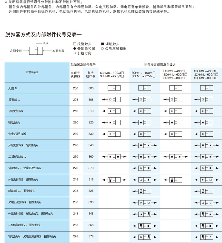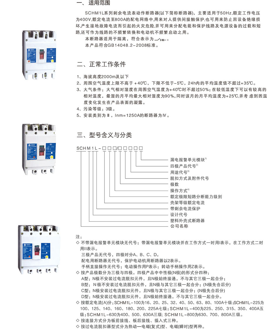 CM1塑殼式斷路器也被稱為裝置式斷路器,所有的零件都密封于塑料外殼中,輔助觸點(diǎn),欠電壓脫扣器以及分勵(lì)脫扣器等多采用模塊化。由于結(jié)構(gòu)非常緊湊,塑殼斷路器基本無(wú)法檢修。其多采用手動(dòng)操作,大容量可選擇電動(dòng)分合。由于電子式過(guò)電流脫扣器的應(yīng)用,CM1塑殼式斷路器也可分為A類和B類兩種,B類具有良好的三段保護(hù)特性,但由于價(jià)格因素,采用熱磁式脫扣器的A類產(chǎn)品的市場(chǎng)占有率更高。CM1塑殼式斷路器是將觸頭、滅弧室、脫扣器和操作機(jī)構(gòu)等都裝在一個(gè)塑料外殼內(nèi),一般不考慮維修,適用于作支路的保護(hù)開(kāi)關(guān),過(guò)電流脫扣器有熱磁式和電子式兩種,一般熱磁式塑殼斷路器為非選擇性CM1塑殼式斷路器,僅有過(guò)載長(zhǎng)延時(shí)及短路瞬時(shí)兩種保護(hù)方式,電子式塑殼斷路器有過(guò)載長(zhǎng)延時(shí)、短路短延時(shí)、短路瞬時(shí)和接地故障四種保護(hù)功能。部分電子式塑殼斷路器新推出的產(chǎn)品還帶有區(qū)域選擇性連鎖功能。大多數(shù)CM1塑殼式斷路器為手動(dòng)操作,也有部分帶電動(dòng)機(jī)操作機(jī)構(gòu)。